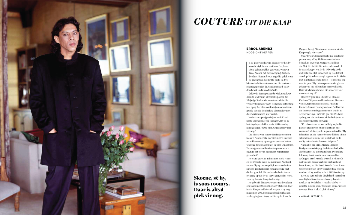 Die eindproduk is wel geensins ’n modetydskrif in die tradisionele sin van die woord nie (moenie verwag om figure soos Koos Bekker in high fashion te sien poseer nie), maar dit het die elegansie en tydloosheid wat Mevrou Wintour se goedkeuring sal wegdra. (Kyk net na die paar portrette hier onder, wat die uitgewer so gaaf was om met Klyntji te deel.)