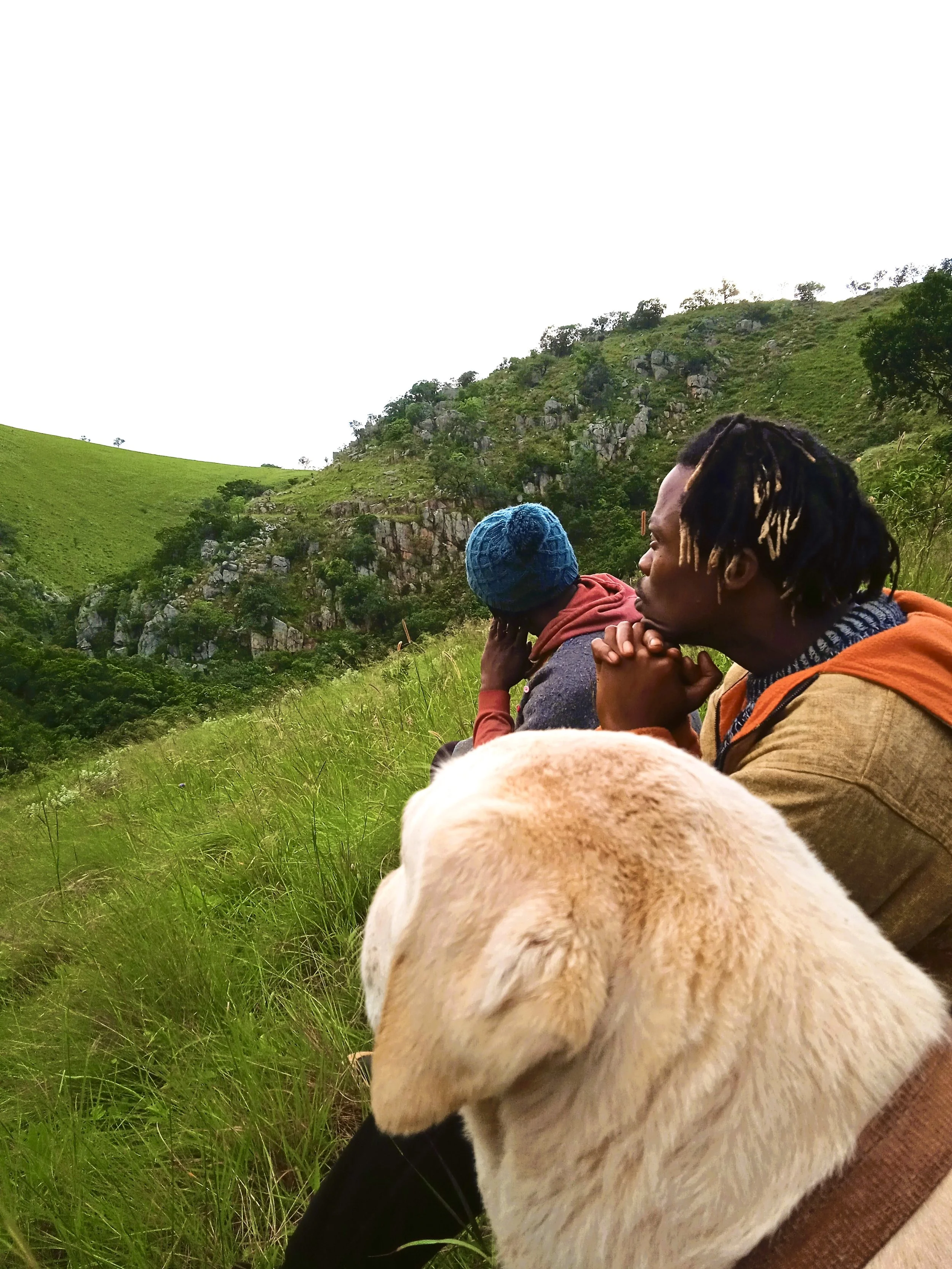 Nick, Luzuko en Woud, die Labrador, in die Laeveldse berge.