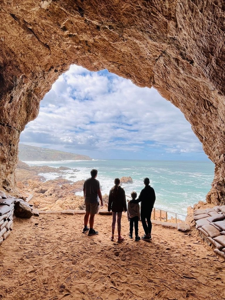Ek en my familie by Pinnacle Point in Mosselbaai, waar ons voorvaders reeds 72 000 jaar gelede vuur gebruik het om gereedskap te maak.