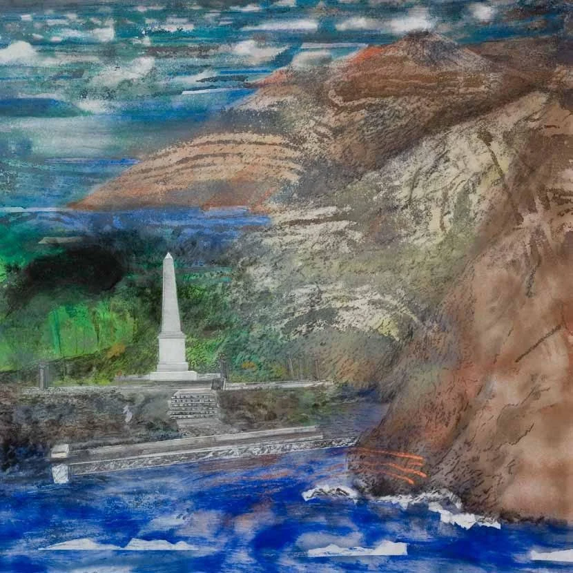 Cook’s death and the way of the gods: Kealakekua Bay, Hawaii (2011). Pastel and sprayed pigment on bonded fibre fabric, 172 x 172 cm.