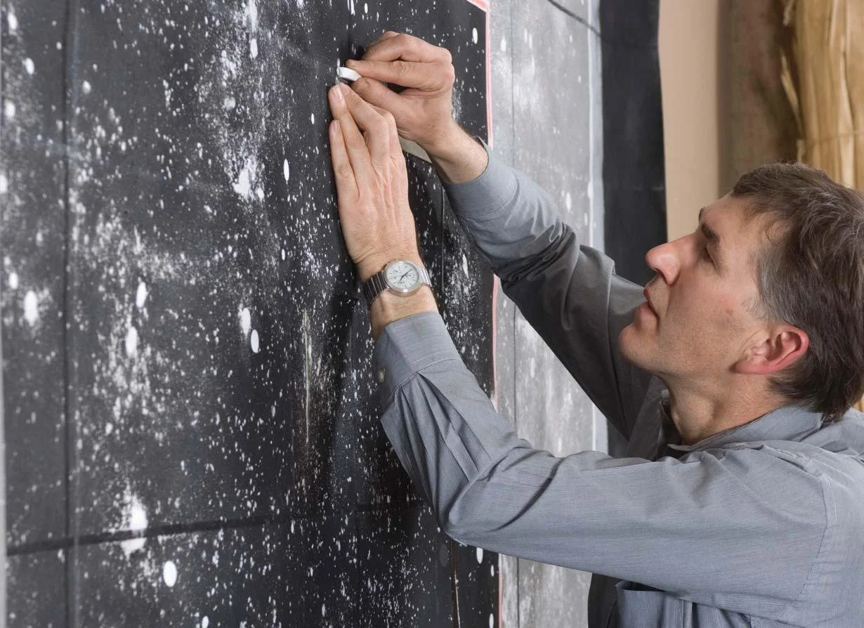 Keeping out the light: centre for astrophysics, Paris (2011). Pastel and sprayed pigment on bonded fibre fabric, 175 x 175 cm.