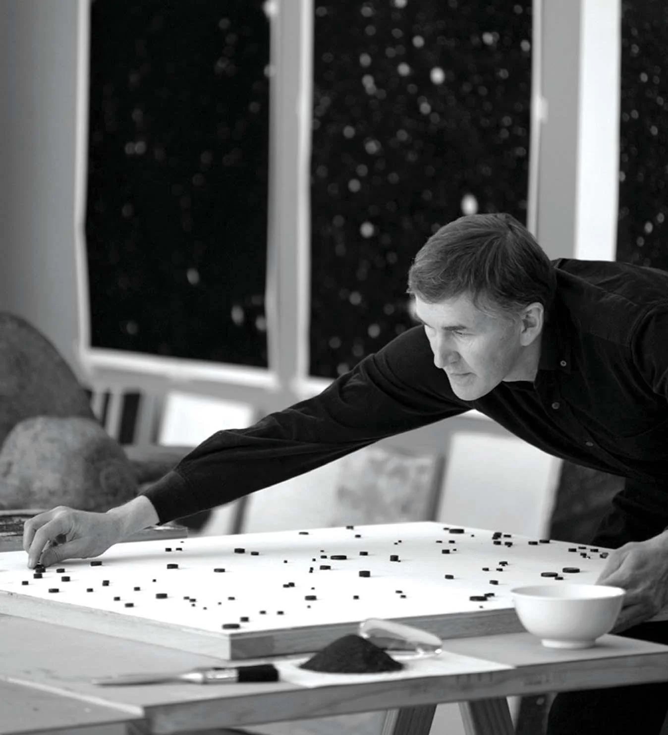 Composing darkness (2008). 540 million year old black carboniferous dust and salt, 80 x 80 cm.