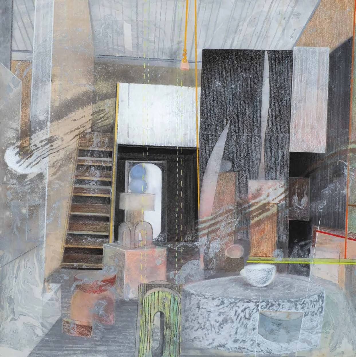 Eidetic space (2012). Pastel, metallic dust and dry pigment on bonded fibre fabric, 181 x 181 cm.