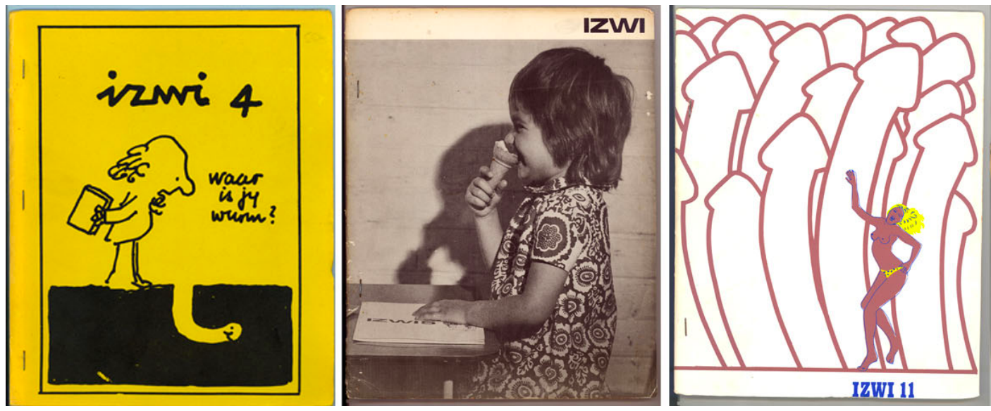 Izwi was baanbrekend in die gebruik van visuele materiaal. Die zine se omslae bevat oorspronklike kunswerke deur bekende kunstenaars Peter Clarke, Walter Battiss, Wopko Jensma, Christo Coetzee, Norman Catherine, Casper Schmidt, Gus Ferguson, Alexis Preller, Cecil Skotnes en Sipho Magudulela. Nommer 16 (1974) was ’n Fook Island-uitgawe deur Battiss: verseël in ’n koevert uitgemaak aan “hard-core poetry readers”, met ’n beknopte inventaris – “Contents: 20 poems; 1 short story, 1 graphic by Catherine, 1 poster by Battiss”. Izwi het vinnig versamelitems geword.