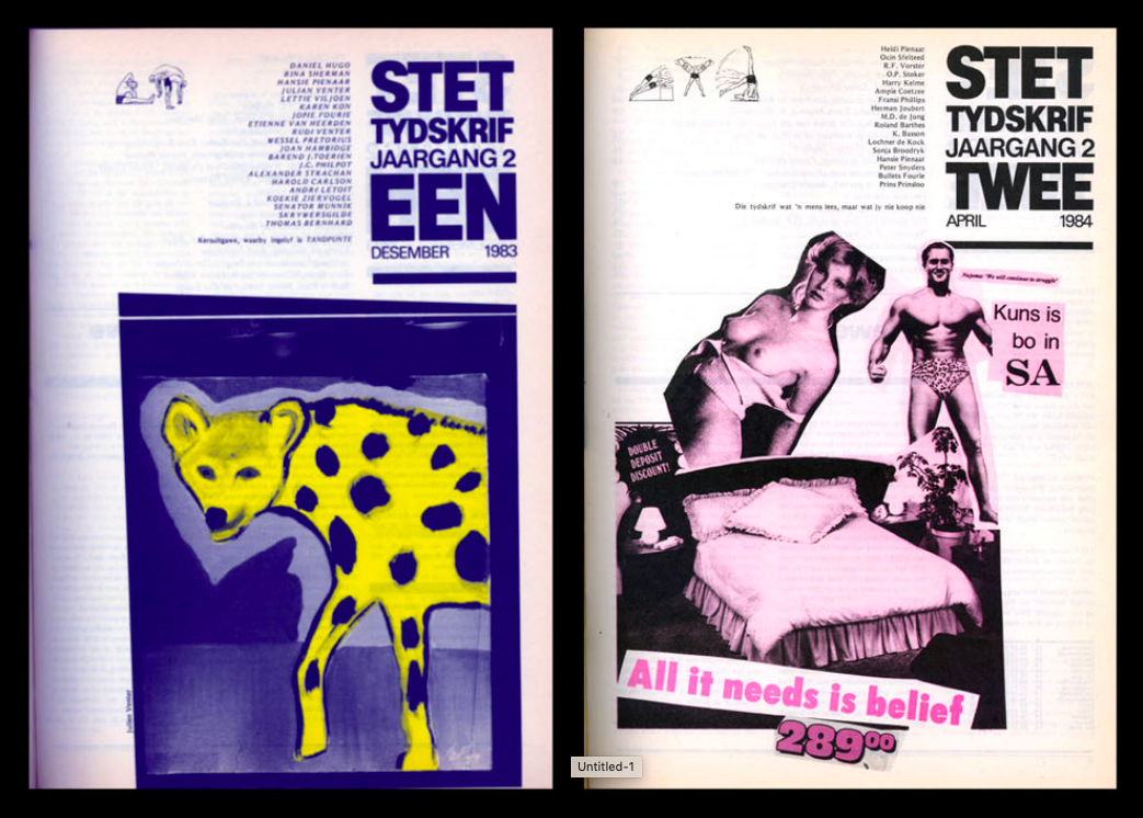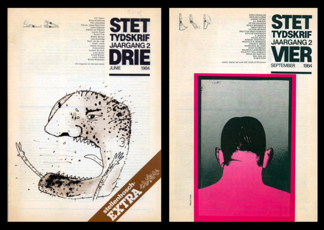 “Daar was nie ’n spreekbuis vir die Afrikaanse lefties nie.” So sê Tienie du Plessis, die ontwerper van Stet, oor die vakuum wat hom en redakteur, Gerrit Olivier, gedryf het om dié zine te begin. Vir 10 jaar, van 1982 tot 1992, sou Stet die mees invloedryke Afrikaanse little magazine wees, met ’n leserskring groter as enige van dié se voorgangers.